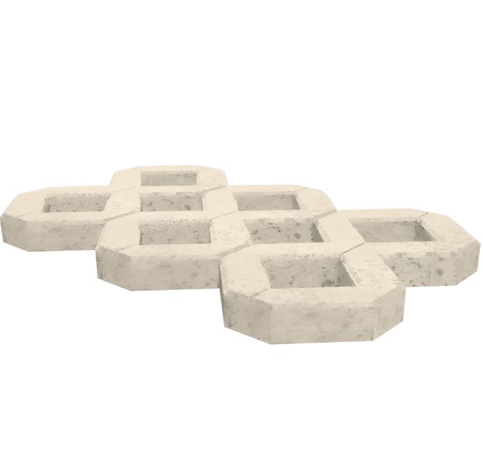 Газонная решетка изготавливается из тяжелого бетона, что придает ей устойчивость к механическим нагрузкам. Благодаря толщине 100 мм она выдерживает вес легковых и грузовых автомобилей, что делает ее идеальным решением для парковок.